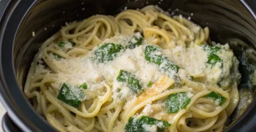 Slow Cooker 4-Ingredient Spinach Alfredo Pasta