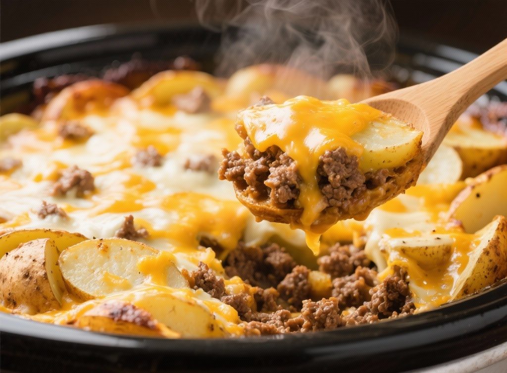 When it comes to hearty, soul-warming meals that practically cook themselves, nothing beats a good crockpot recipe. This Cheesy Beef & Potato Bake combines all the comfort food essentials – tender ground beef, creamy potatoes, and plenty of melted cheese – into one incredible dish that will have your family asking for seconds.