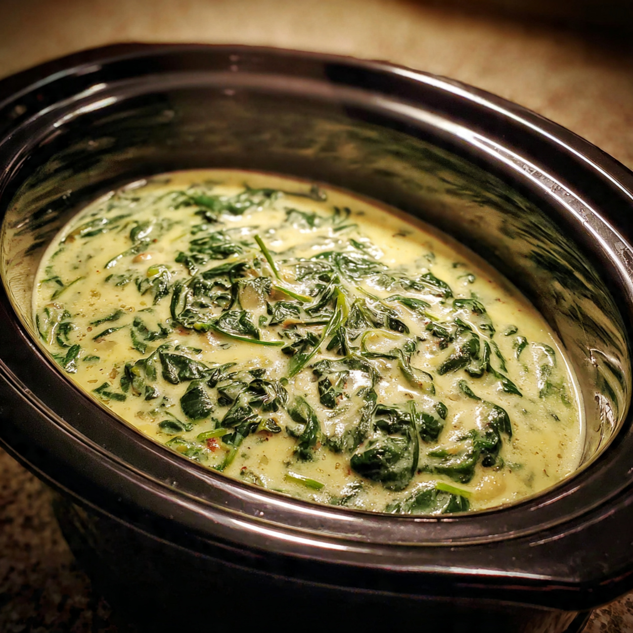 This is one of those recipes you throw together when the rest of dinner is already happening and you don’t want to stand at the stove stirring a pot. You add everything to the crockpot, walk away, and come back to warm, creamy spinach that feels a little special without any extra effort.