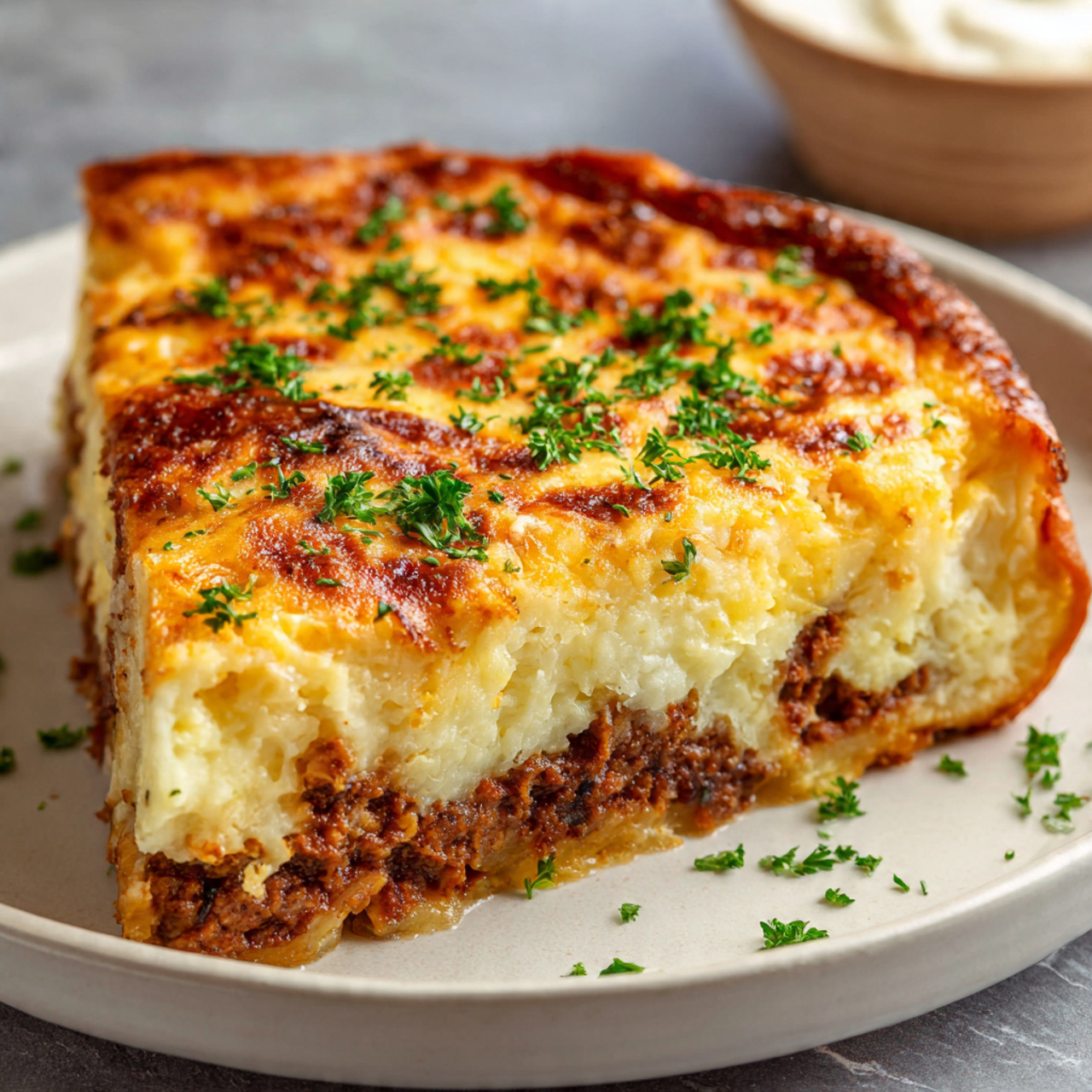 This Mashed Potato and Meatloaf Pie delivers all the elements of a classic comfort meal — tender beef, creamy potatoes, and rich gravy — but combines them into a single, easy-to-serve dish. The layered presentation is not only beautiful but practical: every slice has the perfect ratio of meat, potato, and cheese.