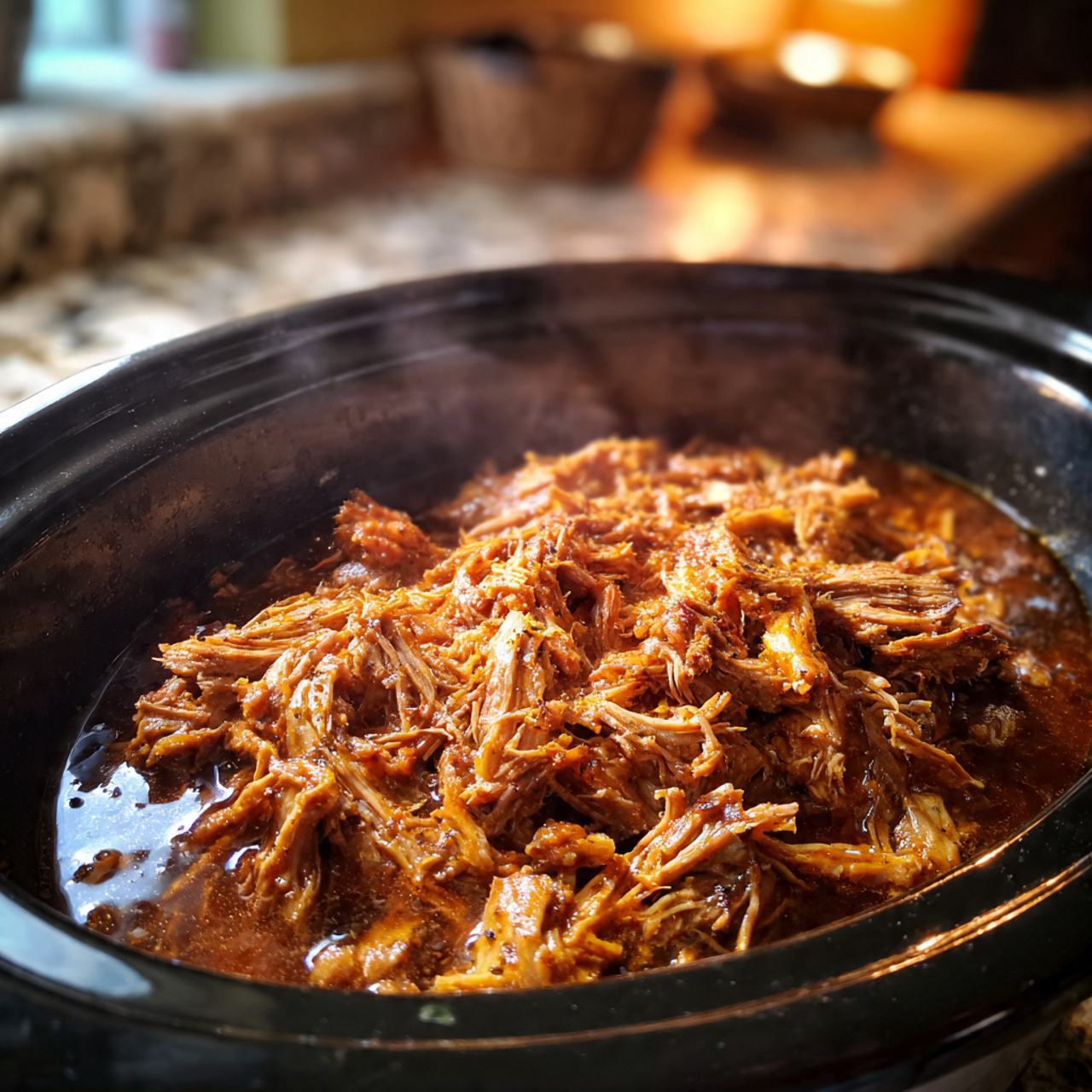 The pork is ready when it’s tender and easily pulls apart with a fork.