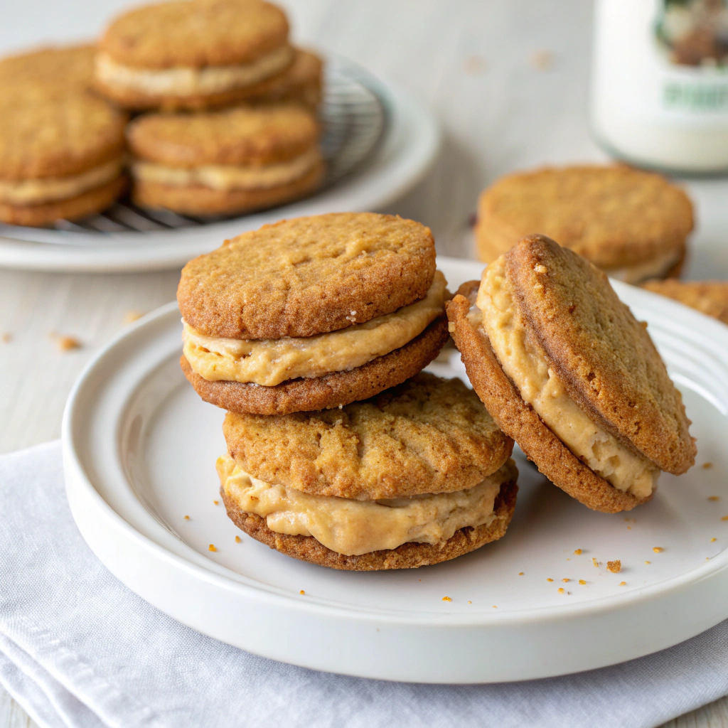 These cookies are slightly crumbly on the edges, rich in peanut flavor, and filled with a smooth vanilla cream layer. They don’t need fancy techniques or complicated steps — just mix, shape, bake, and sandwich together. The imperfect homemade appearance actually makes them more appealing, especially for readers who enjoy real-kitchen recipes.